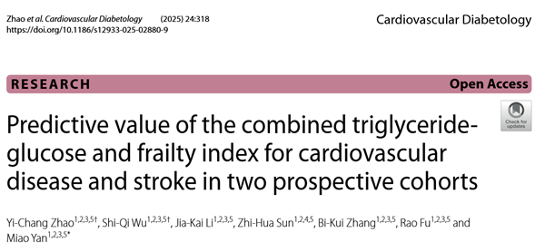 ● 颜苗团队发表创新成果揭示:TyGFI为老年人群心脑血管风险早期筛查提供简易工具