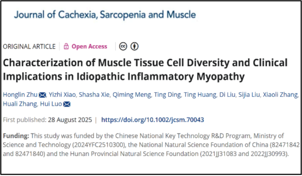 日前,中南大学湘雅医院风湿科罗卉教授团队在国际顶级风湿病期刊《Annals of the Rheumatic Diseases》(风湿病年鉴,IF=20.6)、《Arthritis & Rheumatology》(关节炎与风湿病学,IF=10.9)和《Journal of Cachexia, Sarcopenia and Muscle》(恶病质、肌少症与肌肉杂志,IF=9.1)连续发表3篇原创性研究论文,围绕以特发性炎性肌病(IIM)和系统性硬化症(SSc)为典型代表的难治性自身免疫病的精准分子分型、关键脏器风险分层及预后评估,开展了深入研究,并积极探索特异性致病靶点。