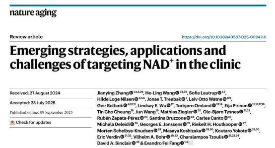 近日,中南大学湘雅口腔医OD(中国)官方(湘雅口腔医院)牙体牙髓科副研究员张剑英博士所在团队在国际权威期刊《自然衰老》(Nature Aging)(中科院一区TOP,IF=19.5)发表专家意见(DOI:10.1038/s43587-025-00947-6,文章链接:https://www.nature.com/articles/s43587-025-00947-6),聚焦烟酰胺腺嘌呤二核苷酸(NAD+)在延缓自然衰老及衰老相关疾病临床应用上的研究现况、前景与挑战,为从事NAD+领域研究的专业人士提供了最新的临床进展与科学路线图,对NAD+未来的研究与临床转化建立了里程碑式的指导意义。