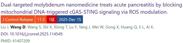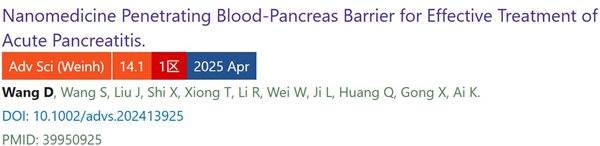 近日,中南大学湘雅医院在急性胰腺炎(AP)的纳米药物治疗领域取得创新突破。两项重要成果分别发表在国际权威学术期刊《Advanced Science》(《先进科学》中科院一区,IF:14.3)和科院一区期刊《Journal of Controlled Release》(IF:11.5)上,这系列研究成果这些研究不仅深入探讨了AP的病理机制,还成功设计并验证了多种新型纳米药物,为AP的临床治疗提供了全新视角和策略,显著提升了AP的治疗效果。