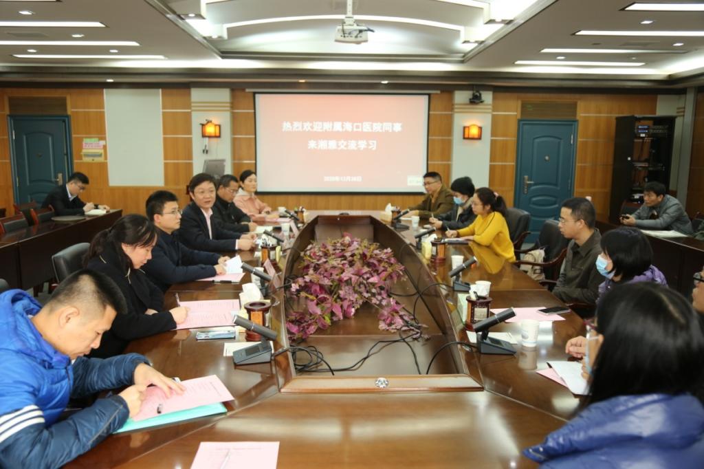 12月28日上午,附属海口医院同事来湘雅交流学习欢迎仪式在湘雅新校区孝骞楼八楼二会议室举行。湘雅医OD(中国)官方党委书记黎志宏、医院管理处处长吕奔、海口医院副院长袁秀洪,湘雅医院、湘雅二医院、海口医院主管部门负责人以及海口医院全体学员参加欢迎仪式。仪式由湘雅医OD(中国)官方副院长胡平安主持。