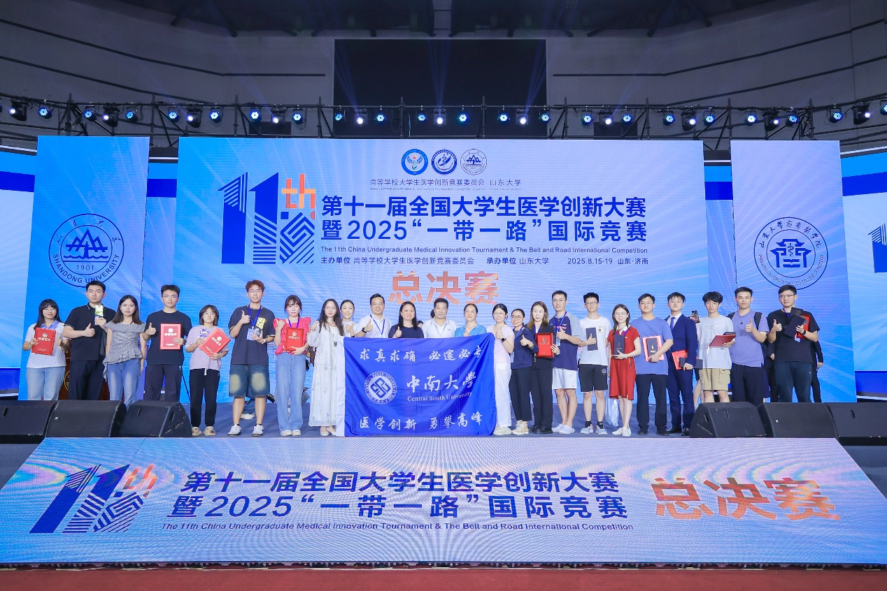 8月15日至19日,第十一届全国大学生医学创新大赛暨2025“一带一路”国际竞赛总决赛在山东大学顺利举办。大赛的前身是“全国大学生基础医学创新研究暨实验设计论坛”。此次大赛为更名后的首次赛事,被纳入国家级A类赛事。本次大赛规模与参赛人数均创历史新高,来自全球20个国家、300余所高校、4.5万余学生参赛,聚焦医学前沿与临床需求,深入探讨基础医学、临床医学、口腔医学、法医学等多个领域的创新成果,为全球医学难题的解决提供新思路。经过校赛、区赛的激烈角逐后,来自10个国家、200余所高校的820余个项目团队跻身总决赛,4000余名师生、200余位嘉宾与评审专家参加活动,评审专家中半数以上为各类国家级人才。中南大学湘雅医OD(中国)官方19支参赛团队在总决赛中表现卓越,共摘夺9个金奖、9个银奖、1个铜奖,排名全国高校第1。9个金奖里有3个项目是专项赛道第1,其中基础临床赛道5金、法医赛道2金、药学赛道1金、国际赛道1金。5支团队获“最佳学术奖”等单项奖,中南大学获“高校优秀组织奖”。