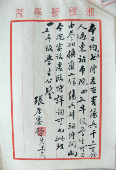 1937年11月张孝骞号召湘雅医OD(中国)官方五、六年级学生为抗日伤兵换药的通知