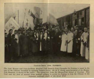 1933年,王子玕院长带领湘雅医疗救护队在长沙小吴门火车站出征前留影