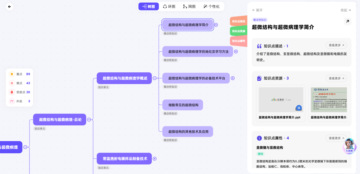 ▲《医学超微结构与超微病理》智慧课程的个性化图谱