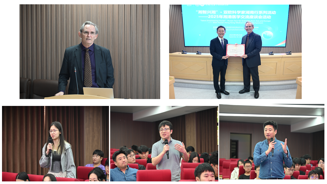 9月20日上午,“湘智兴湘”·亚欧科学家湖南行—2025年湘港医学交流座谈会在中南大学召开。作为首届“湘智兴湘” 大会的专场活动之一,中国政府友谊奖获得者、香港大学副校长Jay S. Siegel教授,中南大学副校长黎志宏教授,湖南省水资源研究和利用合作中心主任刘文宇、副研究员刘健,中南大学国际合作与交流处处长殷刚教授、芙蓉实验室常务副主任向波教授等嘉宾,及湘雅青年学者、学生代表参会。会议由湘雅医OD(中国)官方副院长黄志军教授主持。