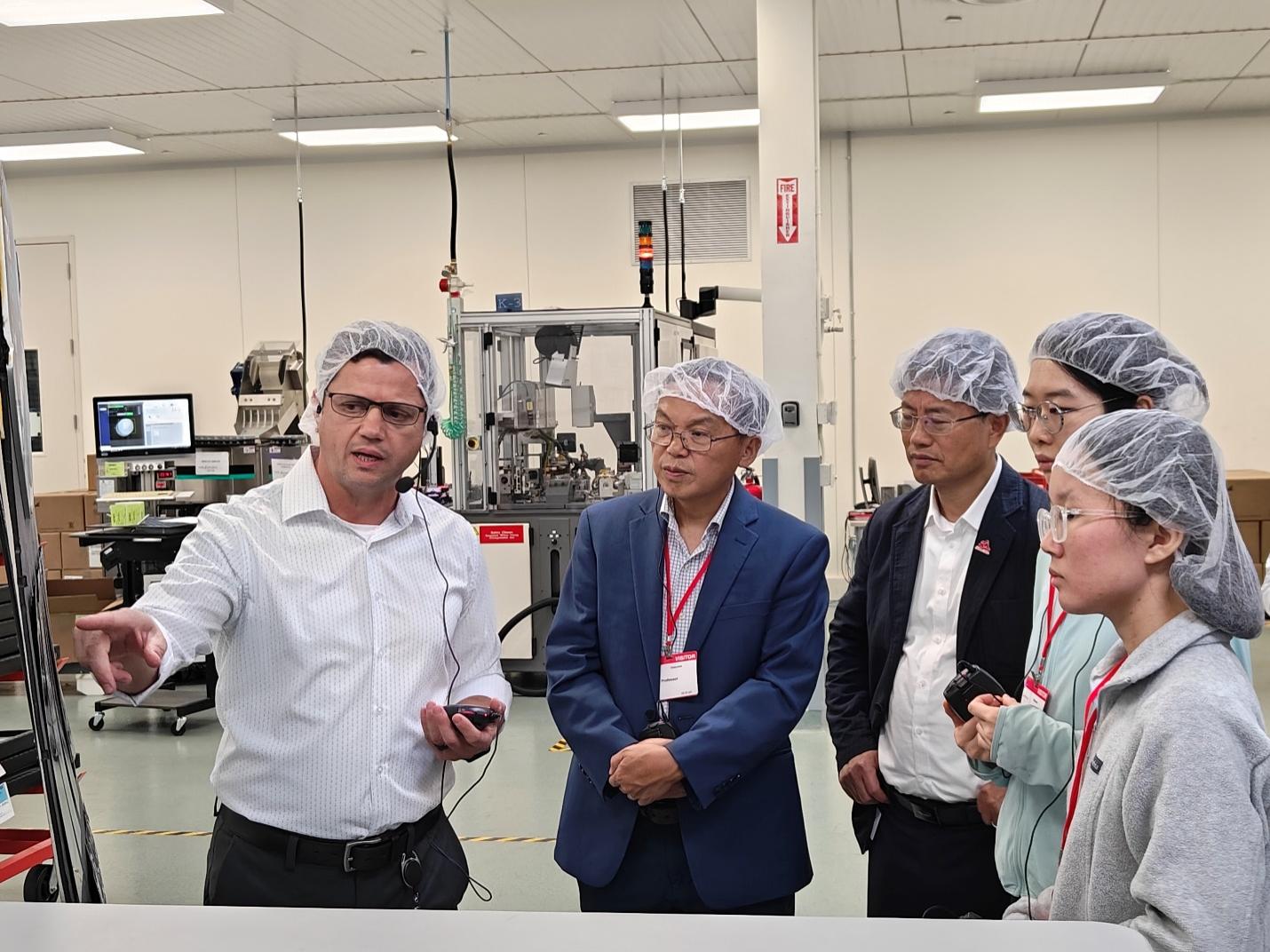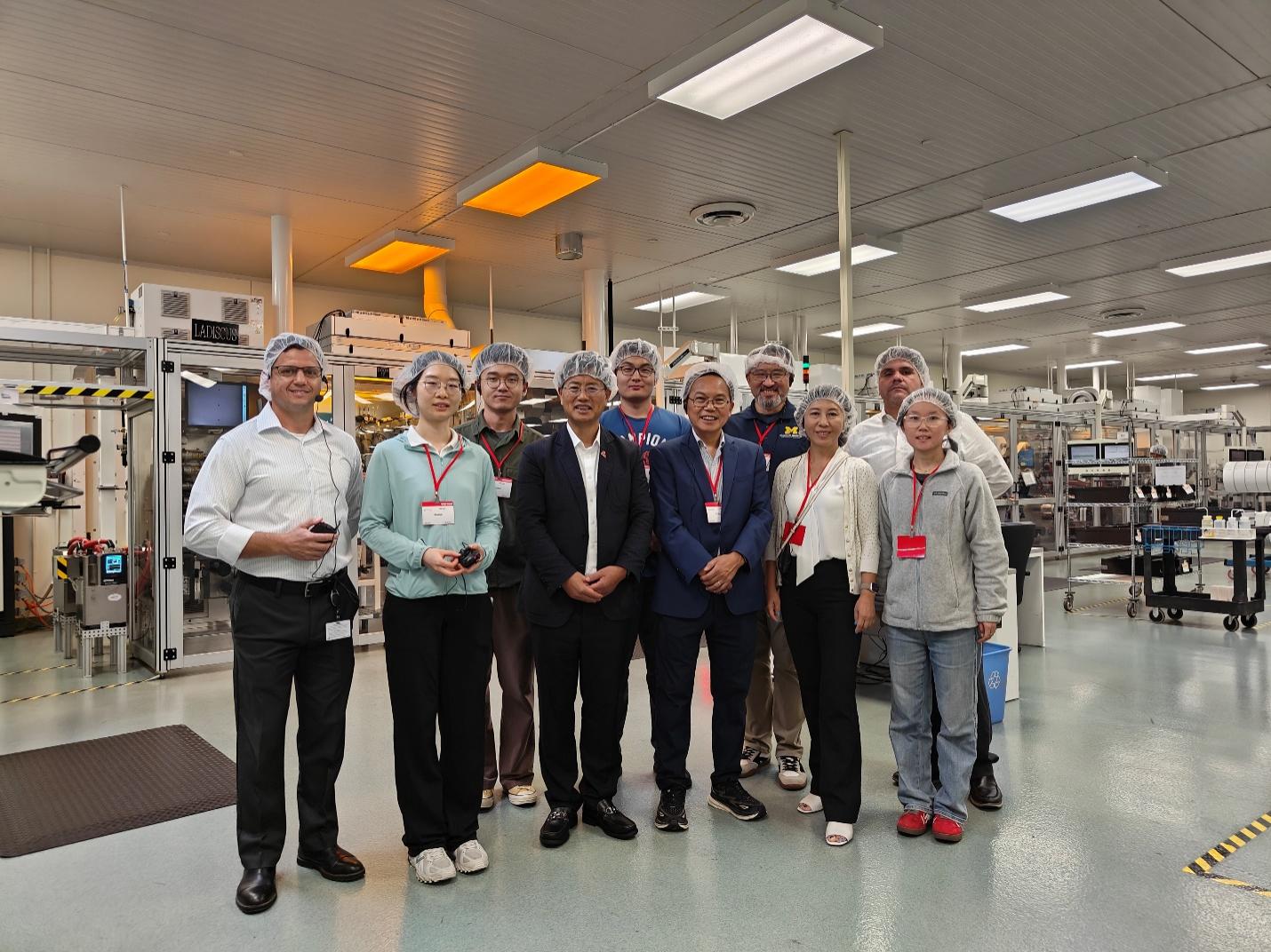 参访首站为Trividia核心生产园区, 项目团队5名教师和11名学生参观了血糖试纸和酮体试纸等生产线,首次近距离观摩现代化血糖试纸生产的全流程。从化学试剂配置、电极刻蚀、酶液喷涂,到多层膜材精准叠合、模切分板、批次定码,每一步均由精密视觉检测与自动化设备把控,确保产品的稳定性和高精度。并有QC部门对每批次产品进行准确性检测,保障精度与一致性。这一过程让同学们直观感受到现代化医疗器械制造的精密和严谨,深刻体会到三诺在规模化、智能化和质量管理上的领先实力。