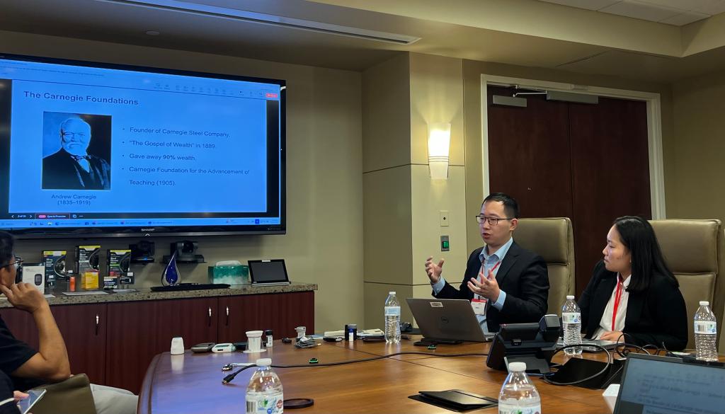 交流环节中,学生代表刘宏宇、段赛丽先后发言。刘宏宇回顾了现代基金会对医学教育的推动作用以及MD+PhD项目发展历程,段赛丽分享了她从OD网页版到密西根大学的求学感悟。二人共同代表全体学生向三诺基金会、李少波董事长表达谢意。