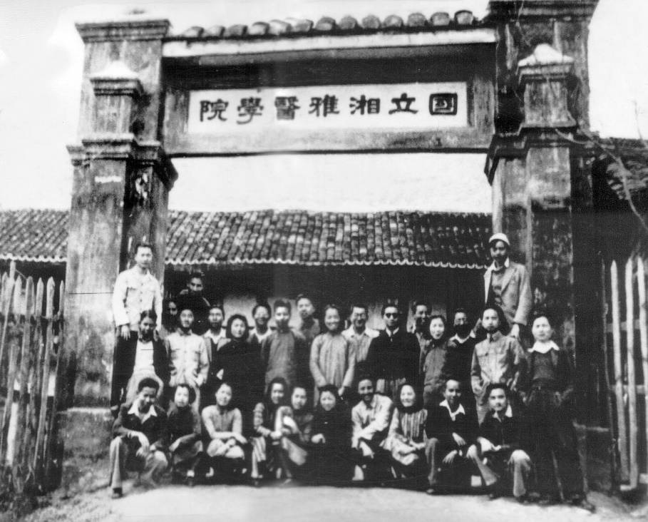 在贵阳办学期间,时任院长张孝骞与教职员在贵阳湘雅村