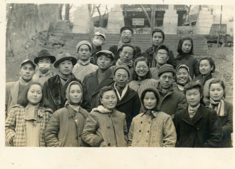 1944年12月,由贵阳北上重庆的湘雅学生途径遵义时合影